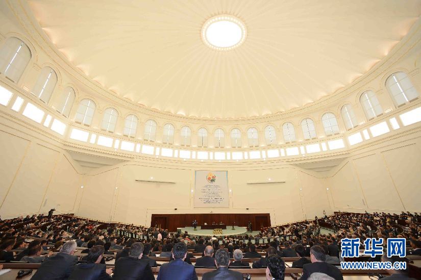 ????6月6日,在烏茲別克斯坦首都塔什干國(guó)際會(huì)議宮,會(huì)議現(xiàn)場(chǎng)。(沙達(dá)提 攝)