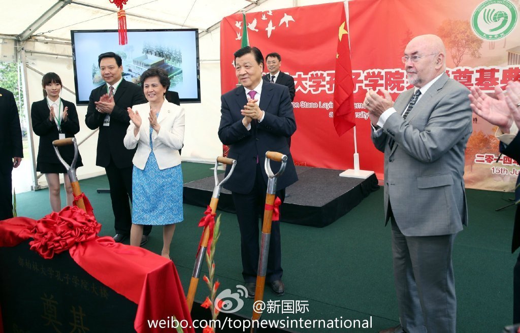 ????新華網(wǎng)北京6月17日電 據(jù)新華社“新國(guó)際”微博報(bào)道,中共中央政治局常委、中央書(shū)記處書(shū)記劉云山15日在愛(ài)爾蘭出席歐洲地區(qū)孔子學(xué)院聯(lián)席會(huì)議時(shí)說(shuō),孔子學(xué)院是應(yīng)運(yùn)而生的文化交流橋梁,希望孔子學(xué)院努力建設(shè)成為聯(lián)通中國(guó)夢(mèng)、各國(guó)夢(mèng)和世界夢(mèng)的“心靈高鐵”。劉云山還向都柏林大學(xué)贈(zèng)送1000冊(cè)漢語(yǔ)教材,支持愛(ài)爾蘭漢語(yǔ)教學(xué)。