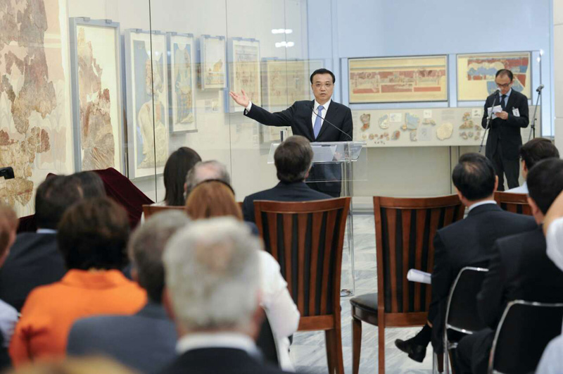 ??? 【李克強引中希先哲名言談兩國合作】李克強21日在伊拉克利翁博物館新館開館儀式上談到中希合作潛力時,引用古希臘哲學(xué)家赫拉克利特名言:“人不能兩次踏進(jìn)同一條河流”與中國思想家孔子名言:“逝者如斯夫,不舍晝夜”。李克強說,中希合作機不可失、時不我待,期待兩國深挖潛力,合作之路越走越寬。