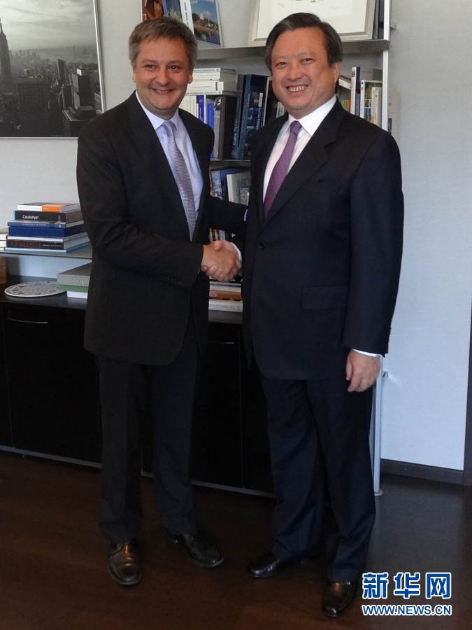 中國(guó)駐西班牙大使朱邦造與安道爾外交大臣薩沃亞會(huì)談前握手。新華網(wǎng) 周喆攝