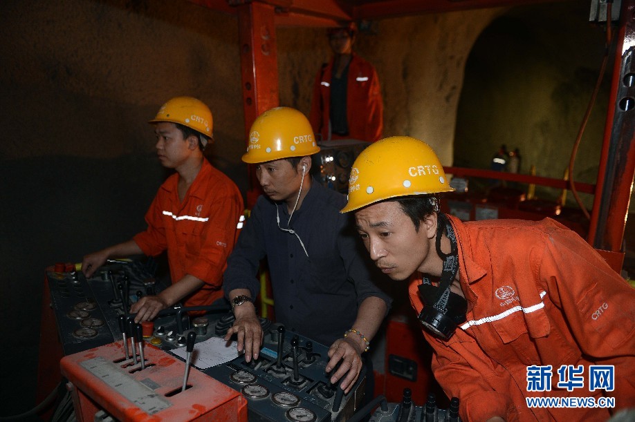 7月5日,工人們?cè)跒跗潉e克斯坦安革連至琶布鐵路隧道緊張工作。(沙達(dá)提 攝)