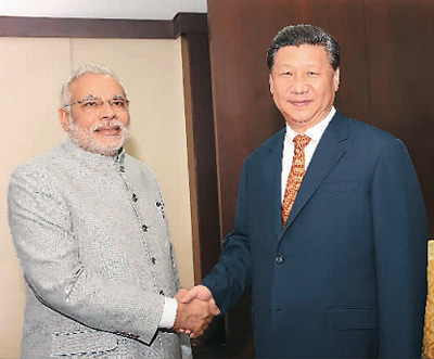 習(xí)近平強(qiáng)調(diào),中印雙方要加強(qiáng)交往,我期待著在不久的將來(lái)訪問(wèn)印度,歡迎莫迪總理早日訪華。雙方要對(duì)接各自發(fā)展戰(zhàn)略,建立更加緊密的發(fā)展伙伴關(guān)系,擴(kuò)大文化、教育、宗教、青年等領(lǐng)域友好交流,在鐵路等基礎(chǔ)設(shè)施建設(shè)、產(chǎn)業(yè)投資等領(lǐng)域打造一批示范性項(xiàng)目,擴(kuò)大服務(wù)貿(mào)易、投資、旅游等領(lǐng)域合作,逐步實(shí)現(xiàn)雙邊貿(mào)易總體平衡和可持續(xù)發(fā)展,推進(jìn)孟中印緬經(jīng)濟(jì)走廊建設(shè),引領(lǐng)區(qū)域經(jīng)濟(jì)一體化進(jìn)程。中印要加強(qiáng)多邊領(lǐng)域合作,共同參與國(guó)際規(guī)則制定,增強(qiáng)發(fā)展中國(guó)家的話語(yǔ)權(quán)。中方歡迎印方作為創(chuàng)始成員加入亞洲基礎(chǔ)設(shè)施投資銀行。雙方要以積極和向前看的態(tài)度管控和處理分歧,通過(guò)友好協(xié)商,盡早找到公平合理、雙方都能接受的邊界問(wèn)題解決辦法。在最終解決前,共同維護(hù)好邊境地區(qū)和平安寧。