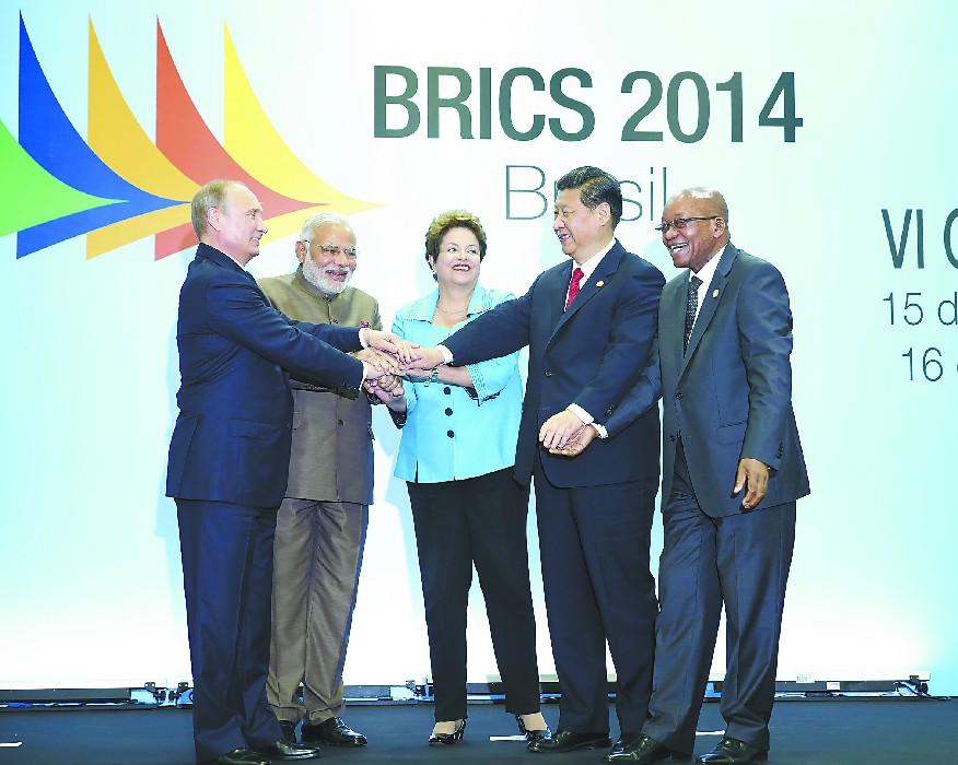 ??“大鵬之動(dòng),非一羽之輕;騏驥之速,非一足之力?!边@句被中國(guó)國(guó)家主席習(xí)近平15日用作對(duì)金磚國(guó)家合作表達(dá)信心的古語(yǔ),當(dāng)天便得到完美的詮釋:金磚國(guó)家宣布創(chuàng)立金磚國(guó)家新開(kāi)發(fā)銀行,總部設(shè)在中國(guó)上海,行長(zhǎng)來(lái)自印度。從提出到落實(shí)不過(guò)一年,“平等參與,大家都有份”,金磚銀行設(shè)立的速度和方式讓西方看笑話的人不適應(yīng)。印度媒體稱,“金磚國(guó)家”這個(gè)概念自13年前出現(xiàn)起就被西方懷疑和輕視,如今,金磚國(guó)家不但相互頻繁走動(dòng),而且“已站穩(wěn)腳跟開(kāi)始走強(qiáng)了”。