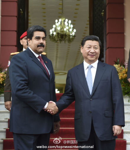 ????新華網(wǎng)北京7月21日電 據(jù)新華社“新國際”微博報道,習近平20日同馬杜羅總統(tǒng)會談時說,我們要加強頂層設計,以金融和投資為引擎,以能源合作為主軸,基礎設施建設、農(nóng)業(yè)、礦業(yè)、科技合作等多個輪子一起轉(zhuǎn),促進中委合作全方位發(fā)展。(李學仁攝)