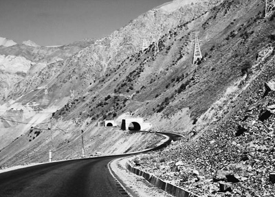 連接塔吉克斯坦南部和北部的塔烏公路是利用上合組織框架內中國政府提供的優(yōu)惠信貸修復的。圖為塔烏公路一段。本報記者 黃文帝攝