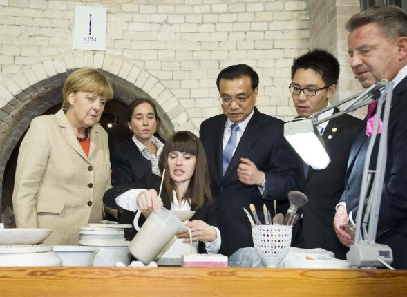 位于柏林市中心的皇家瓷器廠,是一家有著260余年悠久歷史的手工制瓷工廠。在共同出席中德經(jīng)濟技術(shù)合作論壇后,默克爾特地邀請克強總理一起來到這里參觀,并共進小范圍晚宴。