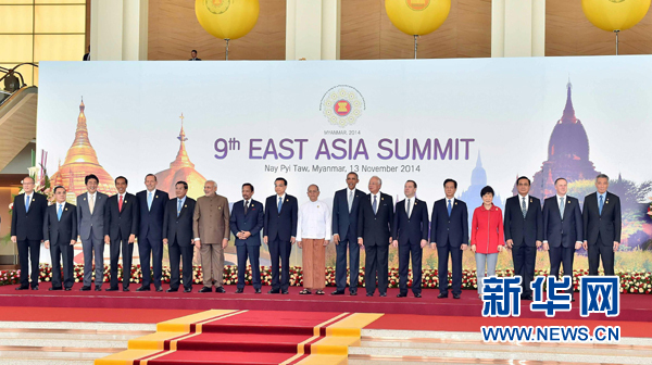 ????11月13日,中國國務院總理李克強在內(nèi)比都出席第九屆東亞峰會并發(fā)言。這是峰會開始前,與會領導人合影。 新華社記者 李濤 攝