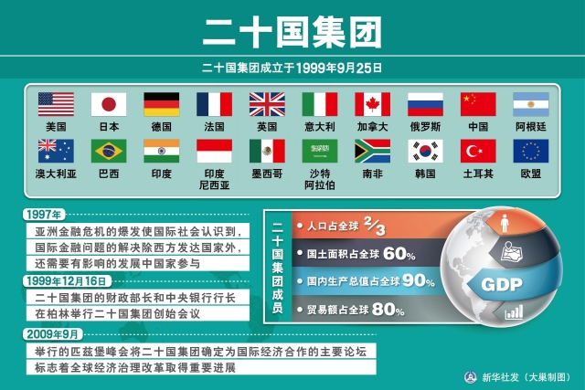 ?。牵玻暗漠a(chǎn)生與發(fā)展,與金融危機(jī)密不可分。1997年的亞洲金融風(fēng)暴,使七國(guó)集團(tuán)認(rèn)識(shí)到與新興經(jīng)濟(jì)體加強(qiáng)對(duì)話的重要性,并在兩年后倡議成立了這一組織,但在當(dāng)時(shí)只限于財(cái)長(zhǎng)和央行行長(zhǎng)的非正式論壇。在2008年國(guó)際金融危機(jī)爆發(fā)后,此對(duì)話機(jī)制迅速升級(jí)為領(lǐng)導(dǎo)人的峰會(huì),以加強(qiáng)各國(guó)的宏觀政策協(xié)調(diào),應(yīng)對(duì)全球性的金融危機(jī)。