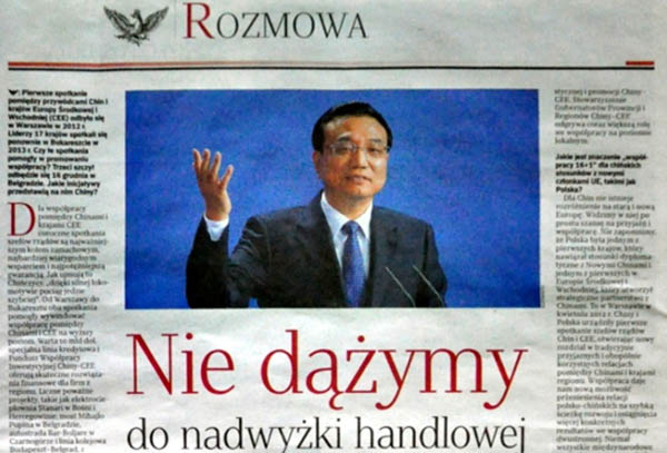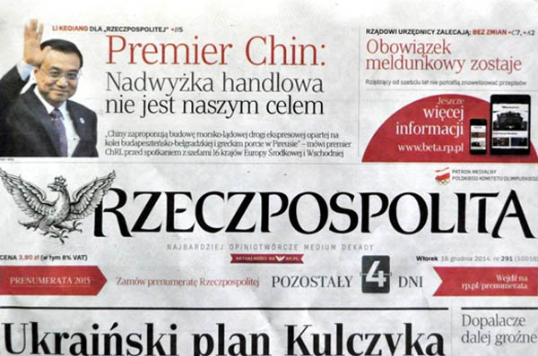 波蘭《共和國(guó)報(bào)》刊登對(duì)李克強(qiáng)聯(lián)合書(shū)面采訪稿件