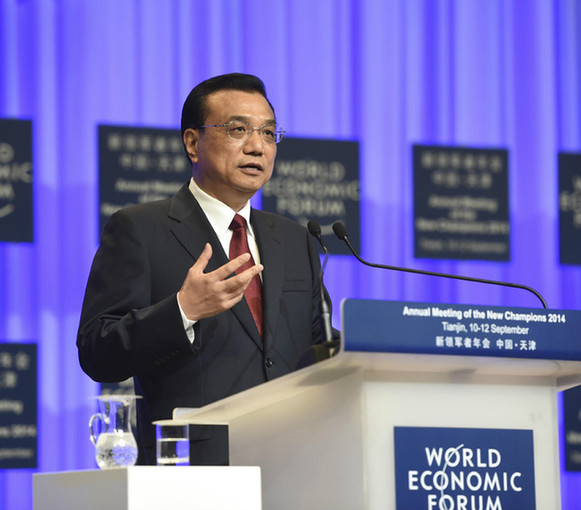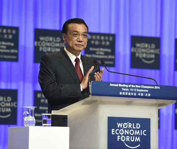 中國國務(wù)院總理李克強(qiáng)出席2014年夏季達(dá)沃斯論壇開幕式