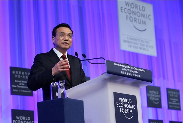 2013年9月11日,克強(qiáng)總理在大連出席2013年夏季達(dá)沃斯論壇開幕式并致辭。