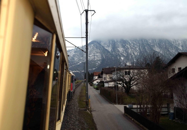 (克強(qiáng)總理乘坐的專(zhuān)列駛往達(dá)沃斯,鐵路依山上行,窗外景色怡人。攝影:李濤)