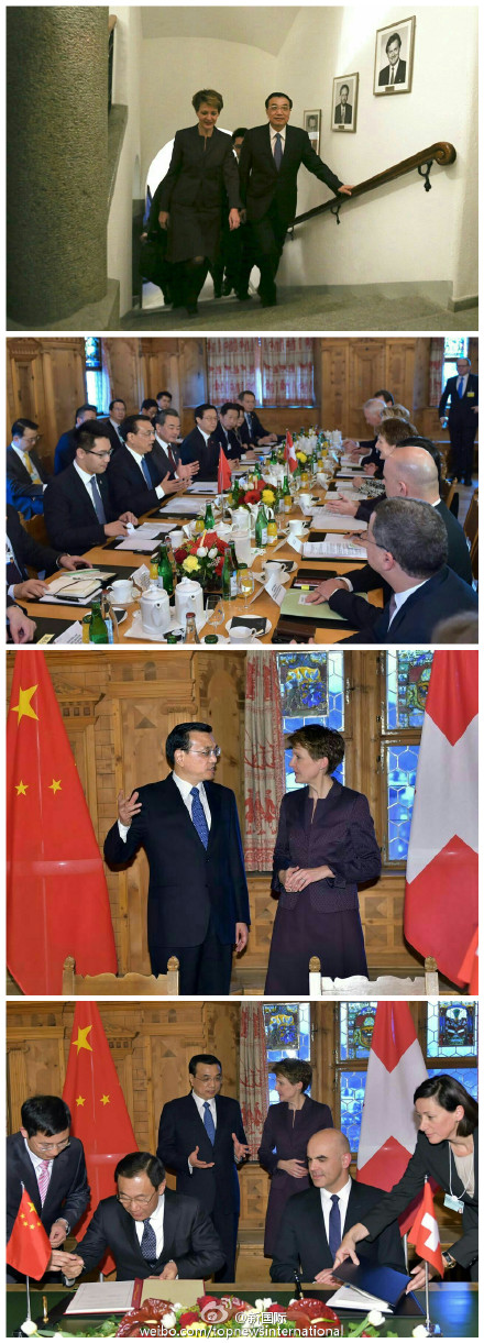??? 新華網(wǎng)北京1月22日電 據(jù)新華社“新國(guó)際”微博報(bào)道,當(dāng)?shù)貢r(shí)間21日下午,國(guó)務(wù)院總理李克強(qiáng)同瑞士聯(lián)邦主席索瑪魯加舉行會(huì)談。李克強(qiáng)說(shuō),中方歡迎瑞方參與人民幣國(guó)際化進(jìn)程,支持蘇黎世人民幣離岸市場(chǎng)建設(shè),愿給予瑞士500億元人民幣的合格境外投資者配額,希望瑞方為中資銀行在瑞開(kāi)設(shè)分行提供便利。