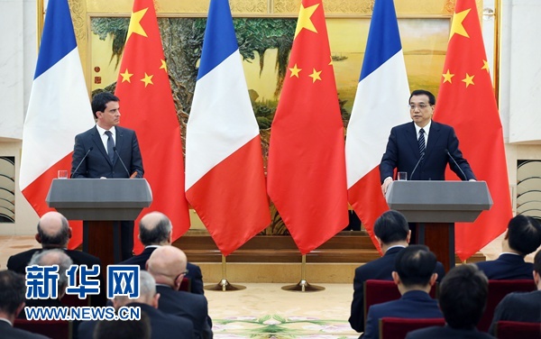 ????1月29日,中國國務(wù)院總理李克強(qiáng)在北京人民大會堂與法國總理瓦爾斯舉行會談后共同會見記者。 新華社記者 姚大偉 攝