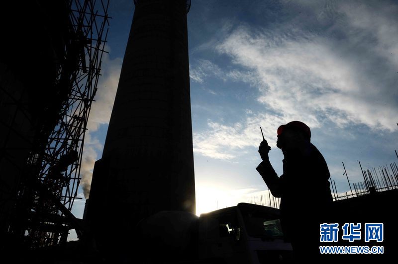 ????烏茲別克斯坦安格連(市)電廠煙囪施工現(xiàn)場(chǎng),來自中國(guó)能建集團(tuán)黑龍江省火電第一工程有限公司的工人在作業(yè)。新華網(wǎng)發(fā) 記者沙達(dá)提 攝