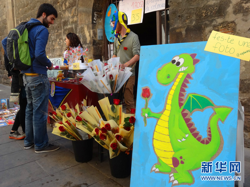 巴塞羅那的“圣喬治節(jié)”:書籍與玫瑰,以及“萌噠噠”的龍(高清組圖)
