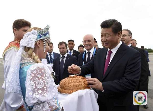 7月8日,國家主席習(xí)近平乘坐專機(jī)抵達(dá)烏法,應(yīng)俄羅斯聯(lián)邦總統(tǒng)普京邀請,出席金磚國家領(lǐng)導(dǎo)人第七次會晤和上海合作組織成員國元首理事會第十五次會議。這是在烏法國際機(jī)場,身穿俄羅斯民族服飾的青年按當(dāng)?shù)赜淤F賓的傳統(tǒng),向習(xí)近平敬獻(xiàn)面包和鹽。習(xí)近平掰下一小塊面包,蘸鹽品嘗。新華社記者饒愛民攝
