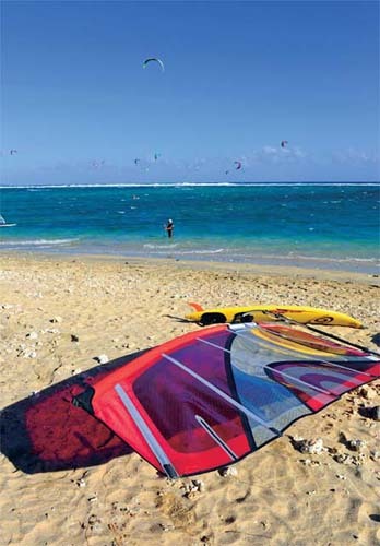 我們在留尼旺的幾天時間里風浪都比較大,不過來到海邊卻發(fā)現(xiàn)海灘上依舊人聲鼎沸,原來好動的法國人和一些歐美游客正利用風浪玩起了刺激的海上運動。幾米高的海浪中早已有了十多名沖浪好手相繼嘗試挑戰(zhàn),雖然他們中的大部分只是業(yè)余愛好,并非職業(yè)沖浪選手,不過一招一式也是頗為認真??拷0陡浇臏\水區(qū)則更多是風帆、摩托艇、皮劃艇、海浪滑板等各項水上運動的世界,對于他們來說,大風就是運動的動力,海水就是運動的場地。一般島上的家庭都會趁著周末舉家開車來到海邊,喜歡玩水的玩水,而其他家庭成員則在沙灘上聚餐或者聊天,如此融入大自然真是瀟灑。