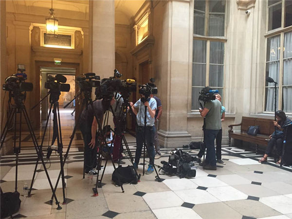 ↑記者們在巴黎司法宮等待采訪