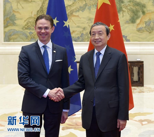 馬凱表示,今年是中歐建交40周年,雙方要認真落實兩國領(lǐng)導人重要共識,共同深化全方位、多層次、寬領(lǐng)域互利合作,推動中歐全面戰(zhàn)略伙伴關(guān)系向前發(fā)展。當前,世界經(jīng)濟復蘇狀況依然錯綜復雜,中歐應(yīng)加強宏觀政策溝通協(xié)調(diào),推動地區(qū)和全球經(jīng)濟持續(xù)穩(wěn)定增長。要找準“一帶一路”倡議和“歐洲投資計劃”契合點,加強國際產(chǎn)能合作,建設(shè)互聯(lián)互通基礎(chǔ)設(shè)施,并探索數(shù)字經(jīng)濟、網(wǎng)絡(luò)安全等合作新領(lǐng)域。中歐已從單向投資進入雙向投資新階段,中方期待早日達成高水平的中歐投資協(xié)定。