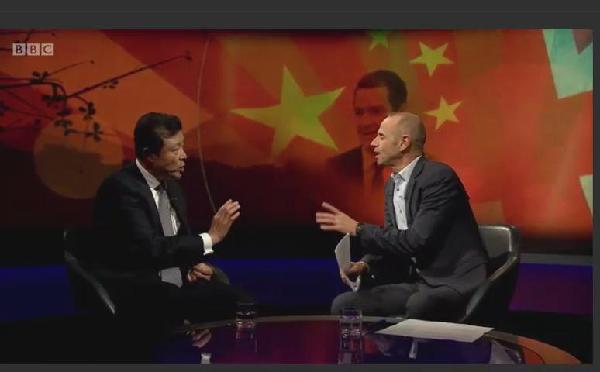 “新聞之夜”是英國(guó)BBC電視二臺(tái)知名時(shí)政類訪談節(jié)目,以深度分析和激烈辯論著稱,在英政界和知識(shí)界影響較大,全球受眾廣泛,英國(guó)及世界政要和精英經(jīng)常接受該節(jié)目專訪。主持人戴維斯是經(jīng)濟(jì)學(xué)家、BBC資深主持人。