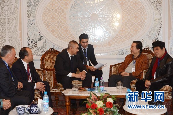 楊曉陽在烏對(duì)外友協(xié)總部向副主席伊山霍加耶夫多年來對(duì)于中、烏兩國(guó)美術(shù)交流活動(dòng)所給予的一貫支持表示衷心的感謝。楊曉陽說,盡管這是他本人第一次應(yīng)邀訪問烏茲別克斯坦,但在此之前,他已在北京與烏對(duì)外友協(xié)主要成員有過多次接觸,而烏對(duì)外友協(xié)在2014年為由中國(guó)國(guó)家畫院前任院長(zhǎng)、中國(guó)當(dāng)代山水畫派代表人物龍瑞先生親自帶隊(duì)赴烏茲別克斯坦執(zhí)行“絲綢之路美術(shù)創(chuàng)作工程寫生活動(dòng)”中所提供的協(xié)助,更是給他留下了深刻的印象。楊曉陽說,在中國(guó)國(guó)家領(lǐng)導(dǎo)人的關(guān)心以及文化部、中宣部的領(lǐng)導(dǎo)下,中國(guó)國(guó)家畫院即將啟動(dòng)“一帶一路國(guó)際美術(shù)工程”,希望烏對(duì)外友協(xié)對(duì)此能夠給予一如既往的積極參與和大力支持。