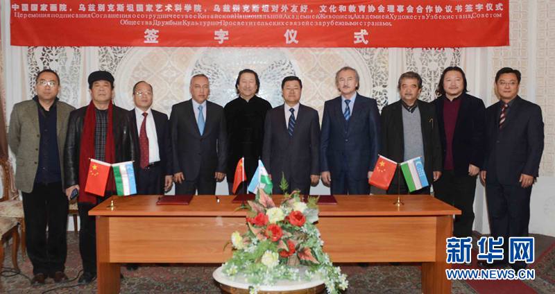 當(dāng)天上午,中國國家畫院院長楊曉陽與烏茲別克斯坦對外友協(xié)副主席阿比多夫和烏茲別克斯坦國家藝術(shù)科學(xué)院院長努爾金諾夫,在中國駐烏茲別克斯坦大使孫立杰以及烏媒體代表共同見證下,分別在協(xié)議書上簽字。協(xié)議聲明,三方將定期為兩國藝術(shù)家開展美術(shù)創(chuàng)作、研究提供條件,定期舉辦創(chuàng)作寫生、藝術(shù)展覽及學(xué)術(shù)研討等文化藝術(shù)交流活動(dòng)。