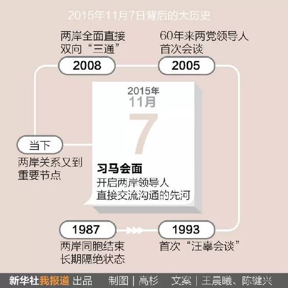 2015年11月7日,兩岸領(lǐng)導(dǎo)人習(xí)近平、馬英九將在新加坡會(huì)面,就推進(jìn)兩岸關(guān)系和平發(fā)展交換意見。這是兩岸關(guān)系發(fā)展史上具有里程碑意義的大事。(來源:新華社客戶端? 文字:陳鍵興、王晨曦)