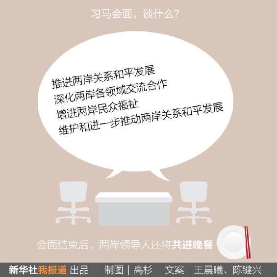 會(huì)面結(jié)束后,兩岸領(lǐng)導(dǎo)人還將共進(jìn)晚餐。