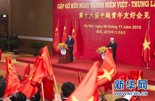 11月6日,中共中央總書記、國家主席習(xí)近平和越共中央總書記阮富仲在河內(nèi)共同會見參加第十六屆中越青年友好會見活動的中越青年代表。新華社記者李學(xué)仁攝