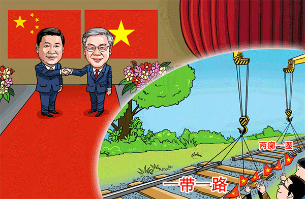 中越是山水相連的友好鄰邦,兩國政治制度相同、發(fā)展道路相近、前途命運相關。建交65年來,中越雙邊關系正朝著建設中越命運共同體的方向不斷前進。習近平此訪,將增進互信,凝聚共識,發(fā)揚中越“好鄰居、好朋友、好同志、好伙伴”特殊情誼,推動中越關系沿著正確道路繼續(xù)發(fā)展,擴大“一帶一路”和“兩廊一圈”框架內(nèi)務實合作,推進中越全面戰(zhàn)略合作伙伴關系邁上新臺階。(作者系中國社會科學院世界經(jīng)濟與政治研究所國際政治經(jīng)濟學研究室副主任徐秀軍 漫畫作者蔡艨)