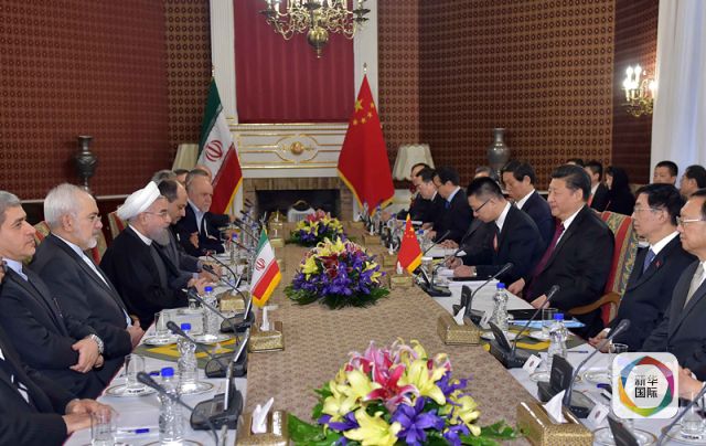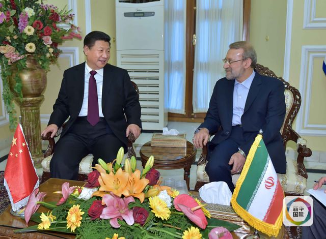 1月23日,國家主席習近平在德黑蘭會見伊朗伊斯蘭議會議長拉里賈尼。(新華社記者李濤攝)
