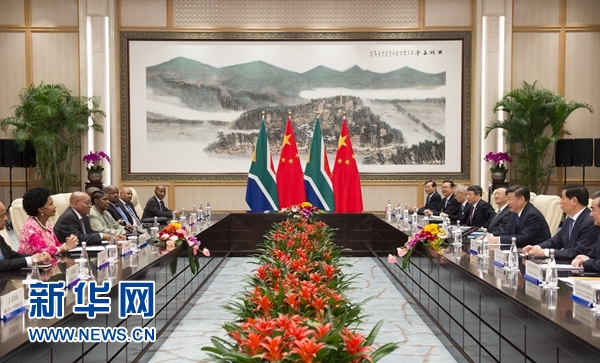 祖馬表示,南中友誼源遠(yuǎn)流長,南非珍視南中全面戰(zhàn)略伙伴關(guān)系。兩國關(guān)系正不斷深化,各領(lǐng)域合作迅速發(fā)展。南方贊賞中方為非洲發(fā)展所做的貢獻(xiàn),贊賞中方引領(lǐng)二十國集團(tuán)領(lǐng)導(dǎo)人杭州峰會聚焦聯(lián)動發(fā)展、聯(lián)合國2030年可持續(xù)發(fā)展議程等發(fā)展議題,并特別關(guān)注非洲發(fā)展,愿密切同中方在聯(lián)合國、二十國集團(tuán)、金磚國家、中非合作論壇等多邊框架內(nèi)合作。