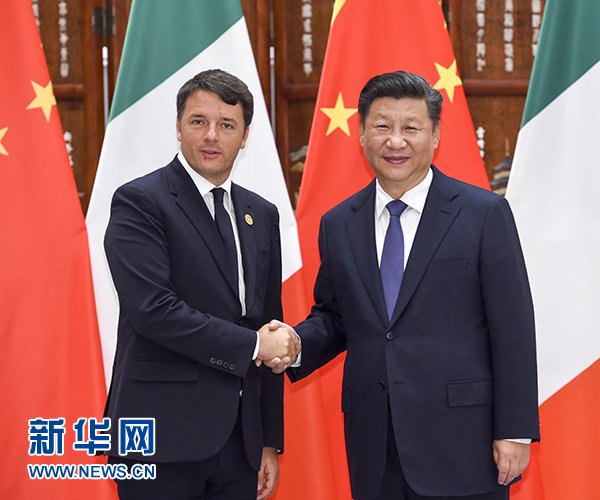 9月3日,國家主席習(xí)近平在杭州會見意大利總理倫齊。 新華社記者 李學(xué)仁攝