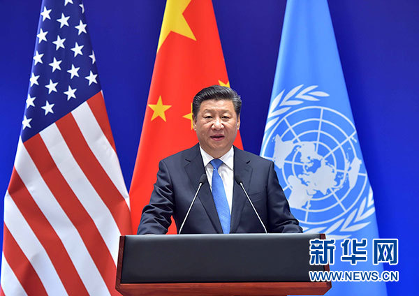 習(xí)近平強(qiáng)調(diào),中國(guó)是最大的發(fā)展中國(guó)家,美國(guó)是最大的發(fā)達(dá)國(guó)家,兩國(guó)在氣候變化領(lǐng)域開(kāi)展了卓有成效的對(duì)話和合作。兩國(guó)共同交存參加《巴黎協(xié)定》法律文書(shū),展示了共同應(yīng)對(duì)全球性問(wèn)題的雄心和決心。國(guó)際社會(huì)應(yīng)該以落實(shí)《巴黎協(xié)定》為契機(jī),加倍努力,不斷加強(qiáng)和完善全球治理體系,創(chuàng)新應(yīng)對(duì)氣候變化路徑,推動(dòng)《巴黎協(xié)定》早日生效和全面落實(shí)。我們要堅(jiān)持共同但有區(qū)別的責(zé)任原則、公平原則、各自能力原則,按照巴黎大會(huì)授權(quán),穩(wěn)步推進(jìn)后續(xù)談判,有效應(yīng)對(duì)氣候變化挑戰(zhàn)。發(fā)達(dá)國(guó)家要履行承諾,提供資金技術(shù)支持,增強(qiáng)發(fā)展中國(guó)家應(yīng)對(duì)氣候變化能力。