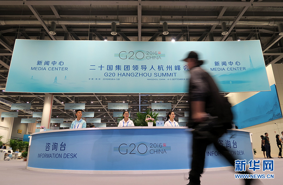 二十國集團領導人第十一次峰會9月4日至5日在浙江杭州舉行。峰會新聞中心一派繁忙景象,境內(nèi)外各路媒體記者使出“洪荒之力”,實時報道峰會動態(tài)。新華網(wǎng)記者 陳競超 攝