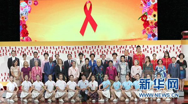 參加里約奧運會的運動員吳敏霞、孫楊、傅園慧,以及青年鋼琴家吳牧野,來到現(xiàn)場,應邀成為紅絲帶健康大使,加入防治艾滋病志愿者行列。大學生們分享了他們對艾滋病的認識和防控艾滋病的決心。2位受艾滋病影響的少年講述了自己的成長故事和對未來的憧憬。現(xiàn)場氣氛熱烈感人,彭麗媛和來賓們頻頻鼓掌,表示贊賞和支持。