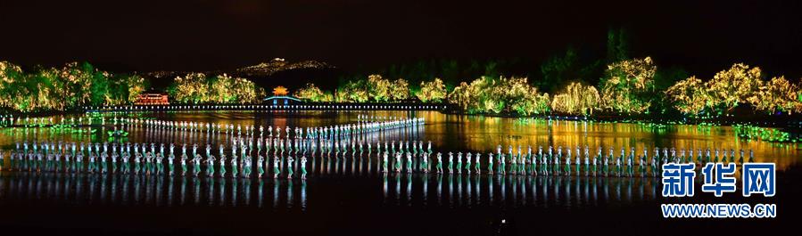 9月4日,演員在表演《采茶舞曲》。當日,出席二十國集團領(lǐng)導人杭州峰會的G20成員和嘉賓國領(lǐng)導人及有關(guān)國際組織負責人在杭州西湖景區(qū)觀看《最憶是杭州》實景演出交響音樂會。新華社記者 張鐸 攝