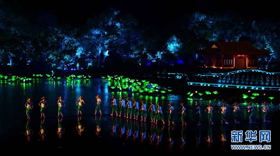 9月4日,演員在表演《采茶舞曲》。當(dāng)日,出席二十國集團領(lǐng)導(dǎo)人杭州峰會的G20成員和嘉賓國領(lǐng)導(dǎo)人及有關(guān)國際組織負(fù)責(zé)人在杭州西湖景區(qū)觀看《最憶是杭州》實景演出交響音樂會。新華社記者 張鐸 攝