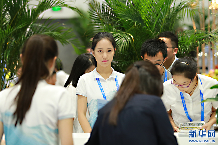 ????“小青荷”是此次峰會(huì)志愿者的代名詞。這個(gè)名字取自宋代詩人楊萬里描寫杭州的詩句“接天蓮葉無窮碧,映日荷花別樣紅”,“青荷”也音同“親和”,他們成了G20杭州峰會(huì)新聞中心里一道亮麗的風(fēng)景。新華網(wǎng) 祝立銘 攝