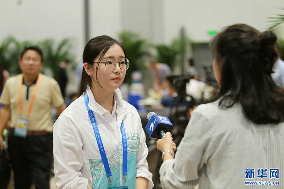 ????“小青荷”是此次峰會(huì)志愿者的代名詞。這個(gè)名字取自宋代詩(shī)人楊萬(wàn)里描寫(xiě)杭州的詩(shī)句“接天蓮葉無(wú)窮碧,映日荷花別樣紅”,“青荷”也音同“親和”,他們成了G20杭州峰會(huì)新聞中心里一道亮麗的風(fēng)景。新華網(wǎng) 祝立銘 攝