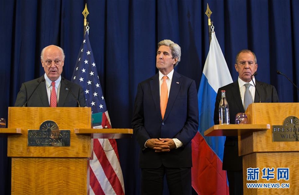 新華社日內(nèi)瓦9月10日電(記者聶曉陽 施建國)美國國務卿克里和俄羅斯外長拉夫羅夫10日在日內(nèi)瓦就沖突各方實施新的停火協(xié)議達成一致,為推動敘問題盡快回到政治解決軌道帶來希望。