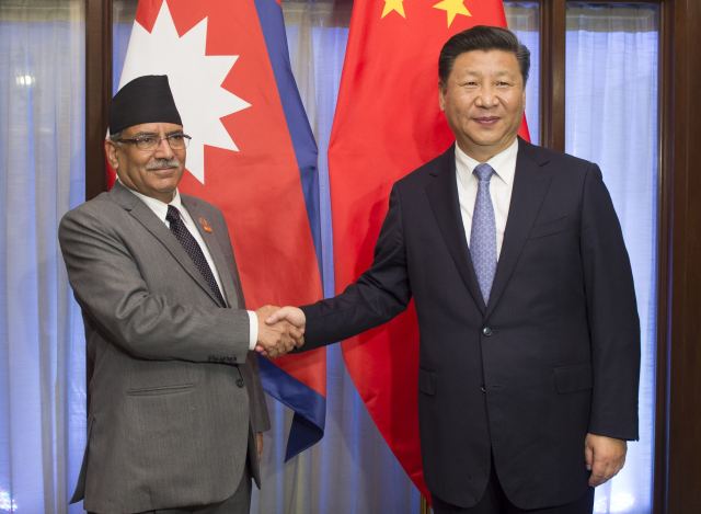 【普拉昌達盛邀習主席訪問尼泊爾】在印度果阿出席金磚國家領導人峰會期間,習近平主席會見了尼泊爾總理普拉昌達。普拉昌達對習主席說:“南亞國家您已經(jīng)基本走遍,相信尼泊爾也一定會成為您訪問的目的地?!绷曋飨f,中國和尼泊爾是山水相連的親密鄰邦,中方愿同尼方一道,對接發(fā)展戰(zhàn)略,深化各領域務實合作,打造中尼命運共同體。(記者陳贄、霍小光)