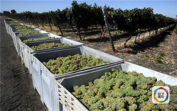 2010年3月25日,智利一葡萄園中擺放著剛剛收獲的葡萄。(新華社/路透)