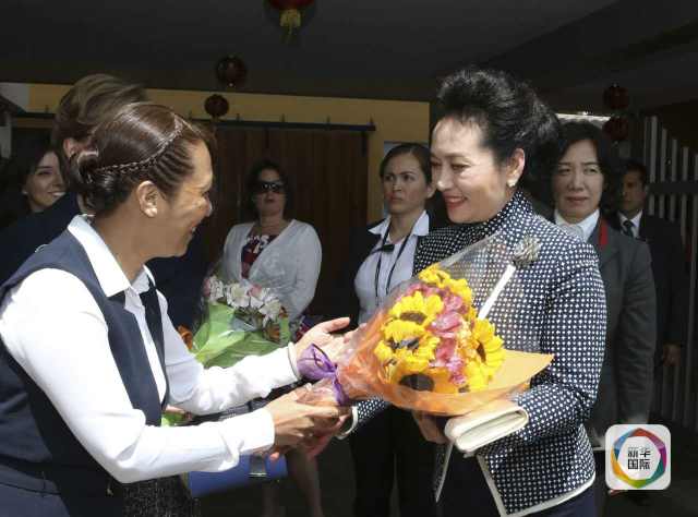 ??? 彭麗媛抵達時,秘魯總統(tǒng)夫人蘭格和學校校長在下車處迎接,校長為彭麗媛獻上鮮花。若望二十三世秘中學校創(chuàng)辦于1962年,是從幼兒園到中學教育的全日制學校,也是秘魯乃至南美洲最具影響的華文學校之一。