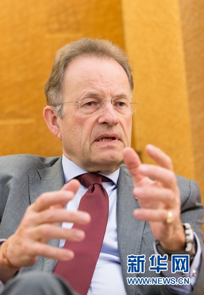 2016年12月19日,在瑞士日內(nèi)瓦萬國宮,聯(lián)合國日內(nèi)瓦辦事處總干事穆勒接受新華社專訪?!傲?xí)近平主席的到訪,再次表明中國對聯(lián)合國多邊主義、對聯(lián)合國機構(gòu)工作和對聯(lián)合國大家庭的支持?!甭?lián)合國日內(nèi)瓦辦事處總干事邁克爾·穆勒日前在日內(nèi)瓦萬國宮接受新華社記者專訪時這樣說。新華社記者 徐金泉 攝