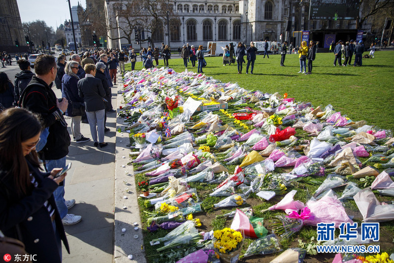 英國民眾在議會(huì)外擺放鮮花 哀悼恐襲受害者(組圖)