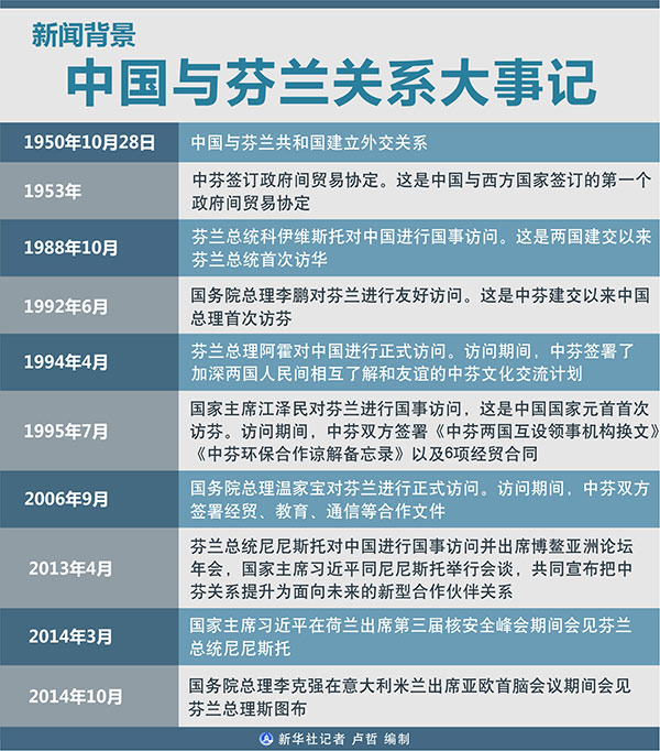 圖表:新聞背景:中國(guó)與芬蘭關(guān)系大事記 新華社記者 盧哲 編制