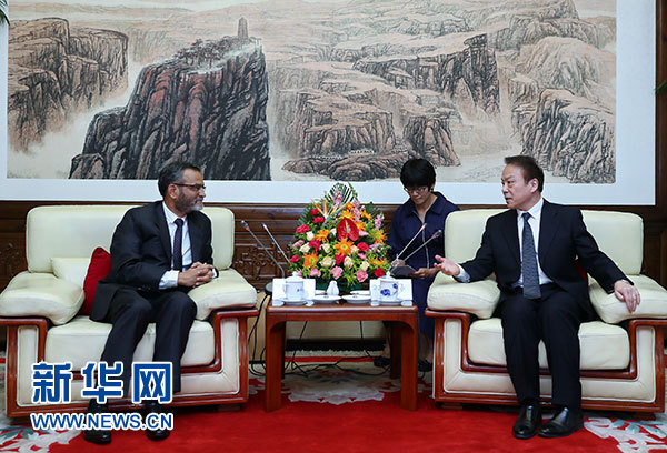 6月6日,新華社總編輯何平在北京會(huì)見(jiàn)印度亞洲通訊社社長(zhǎng)兼首席執(zhí)行官達(dá)加。 新華社記者鞠鵬攝
