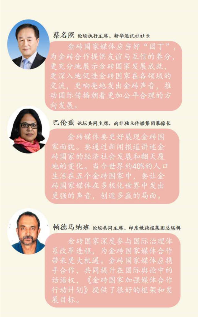 在論壇上,各方還通過了《金磚國家加強媒體合作行動計劃》。相信在未來,金磚國家媒體的合作內(nèi)涵、合作深度、合作廣度將與金磚國家戰(zhàn)略伙伴關(guān)系一同進一步拓展深化!
